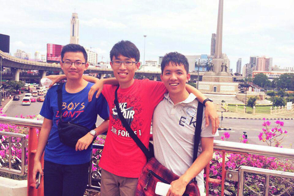 在泰国,我们的笑容也很灿烂(图为阳光学子徐航、霍星星、严志毅)