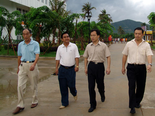 2006年8月10日,三亚市委谢和军副书记视察我院,副院长秦杰锋教授接待了来宾。 谢书记认真听取了秦院长关于学院办学机制、办学规模、校园设施建设、三学期制改革以及二期规划等方面的情况介绍,并参观了我院校园。期间,谢书记对我院在短时间内建成这样一所美丽的校园赞叹不已,对学院的发展前景表示乐观,希望学院不断扩大办学规模,深入开展教学改革,积极参加三亚市的各种大型活动,为三亚及海南的高等教育发展做出更大的贡献。