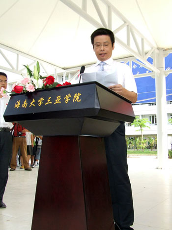 院党委书记、执行院长陆丹教授在开学典礼上发言尊敬的各位领导,尊敬的各位来宾,尊敬的各位老师,尊敬的各位新同学: 大家下午好! 刚才当我和博士生导师、沈为平院长走上主席台时,我们面对印岭翠色,落笔奇峰不禁脱口而出:“江山如此多娇。” 是的。我们正幸运的生活在空气质量、人居环境位居世界前列的三亚。 尊敬的省厅、市委市府各级领导,两年多以前,正是你们高瞻远瞩、从振兴海南经济、提高三亚文化的高度出发,制订了在落笔洞区域开发、教育先行的宏伟蓝图。你们与海南大学、与吉利集团共同谋划,兴办三亚历史上的第一所本科大学,从此,原中国热带植物园的荒野上拔地而起了一座新兴的大学园,从此,祖国各地的学子多了一个圆大学梦的平台,中国高等教育实现大众化的历史使命多了一副承担的肩膀。对你们的敬业精神三亚学院、海南人民、全国的学子永远不能忘怀。 尊敬的海南大学的领导,当你们遵从省委省府的决策,你们是站在海南高等教育发展的战略角度,给予了三亚学院以积极有力的支持。我们祝福、我们期待海大的不断的提升与腾飞之日也是三亚学院蕴育更大的希望之时。 尊敬的李书福先生,你从办企业救国出发,走向资助教育以兴国之路。你从中国社会对实用人才的需求出发对学院的办学理念、“311”课程建设提出了堪称独到的见解。我们有志气、有责任、有办法经过不懈的努力,把三亚学院办成全国独立学院中位列前矛的学院、办成全国高校中大旅游、大休闲专业的一线品牌学院。 尊敬的各位老师,你们来自大江南北,有的还远渡重洋,无论老少都怀抱一个坚定的信念,即“投身高教无尚光荣”,你们充满豪气的创新创业,你们满怀大气的合力更新,你们一身正气的包容、讨论,你们充满爱心、自强不息、诲人不倦,你们是南中国这所新兴大学最宝贵的资源和财富! 尊敬的各位同学,你们不远千里、跋山涉水来到学院,相信你们既被中国唯一的热带滨海城市的美丽、时尚吸引,更为学院全新的办学理念感动。是的,现代大学走过了最为基本的三个阶段,早期欧洲开始了培养有现代科学、人文知识、有教养的士绅;随后随着工业化的加剧,随着学科的分野和市场需求的细化,现代大学开始了培养有现代理性的各类专业性人才;而现在,工业化和城市化的进一步发展,要求大学造就既具备理性精神又具有专业技能、既有人文关怀又有实干能力的职业化人才。今天,中国的大学正和世界上所有发达国家的大学一样,正面临着本科教育的一次新的转型,谁的观念领先、谁的制度合理、谁在转型期的内耗少,谁就更有可能抓住历史机遇形成先发优势。幸运的是,同学们学习的这所学院恰逢这方面的天时地利人和。同学们走进学院,经过311课程体系的培养,通过通识教育、通过校园文化、通过社会实践,将拓宽视野、开阔胸怀、学会学习、学会生活,更好地走向社会,为明天的反哺社会形成综合竞争力。 各位领导、来宾、各位老师、同学,在我们主席台的西南面是标识着人类文明薪火相传的文化遗址落笔洞,主席台的正南面的荒野上崛起的学院一期校园,在主席台的北面和西北面是即将动工兴建的学院二期工程。来年此时,又有数千学子纷至沓来。大学,是现代社会蕴育知识的温床,是讨论式文化的摇篮,同时,现代大学还是体现高效率的组织,当代中国的大学还需要扮演创新基地和和谐文化高地的角色。老师们、同学们,国家、社会各界关注、期待着我们,我们的愿望是,不懈的努力、不懈的奋斗,以我们的出色和优秀还领导和各界的信任与欢迎。 谢谢。