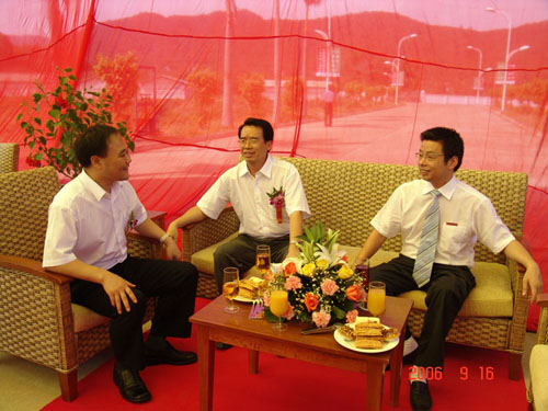 陆丹院长(右)和陆志远市长(中)、李书福董事长(左)在一起