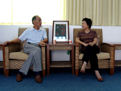三亚市副市长郑佩琪女士(右)和秦杰锋副院长(左)亲切交谈