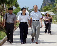 代表团成员还向秦杰锋教授了解了学院的创业历程、办学理念、专业设置、师资建设、发展规划等方面情况,并乘坐电瓶车参观了校园。他们表示,学院的育人理念和人才培养模式很有新意,校园环境非常优美。代表们对学院教学楼、行政楼、图书馆、食堂等建筑的命名也比较感兴趣,称这些命名洋溢着浓浓的书香味。在一楼接待室休息时,他们纷纷参观墙壁上悬挂的学院创建历史图片,不断有人拍照留念或在本上做纪录,表示要把学院的创业故事带回广州去。