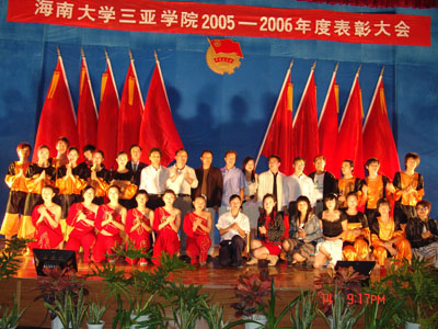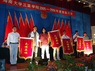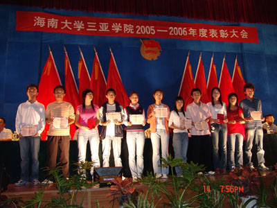 1月14日晚7点,学院千人礼堂洋溢着欢乐的气氛,在各项评比或竞赛中获奖的优秀师生齐聚一堂,满怀欣喜地参加2005—2006年度学生工作表彰大会。会议由学生处副处长顾斌主持。秦杰锋副院长、钱倚剑副院长、各部门负责人和各分院院长应邀出席。 表彰大会共进行四项议程,首先由院办公室副主任、学院首届田径运动会组委会综合组组长王永波同志宣读运动会表彰决定,对在学院首届田径运动会中表现突出的刘宇航、许迪等89名先进个人进行表彰,对被评为先进集体的公体部、艺术分院等5个部门进行表彰;并对运动会优秀文稿奖获得者王明及优秀摄影奖获得者周云峰等13名同学进行表彰。 教务处孙仁佳处长宣读学院计算机盲打指法大赛一、二、三等奖获奖名单,对黄才芳等6名同学进行表彰。 学生处顾斌副处长宣布了学院学生参加三亚城市名片征文比赛等省市比赛的获奖名单,对苏占伟等7名同学及其指导老师进行表彰。 备受关注的2005—2006学年度学生奖学金获奖名单最后一个亮相,更激发了学生的热情。学生处处长邹兴海宣布了181名各项奖学金获奖名单,其中刘付春、马玲2位同学荣获中国教育发展基金会吉利助学金,张忠娣、陈胜楠等9位同学荣获一等奖学金,谭芳、张盼盼等31名同学荣获二等奖学金,董明月、杨娟娟等65名同学荣获三等奖学金,黎小石、虞健宏等19名同学荣获优秀管理奖,符国洪、陈春园等20名同学荣获团结协作奖,林声东、田承涛等11名同学荣获实践能力奖,陈希导、符睿等12名同学荣获组织才能奖,杨超、刘征等10名同学荣获优秀才艺奖,李蓉、王晓玲两位同学荣获自主成才奖。