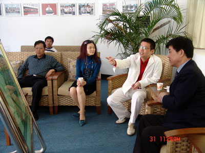 董金平教授(中)和学院领导合影2007年1月31日上午,上海音乐学院党委书记董金平教授、上海音乐学院钢琴系教授汤蓓华、上海音乐学院高级钢琴大师班艺术总监周铿教授一行访问学院。院党委书记、执行院长陆丹教授,院长沈为平教授接待了来宾。 在听取了院党委书记、执行院长陆丹教授的介绍后,董金平教授对学院在较短的时间内建成这样一所基础设施完善,内部管理规范,而且这样美丽的本科院校称赞不已,称学院的建设速度堪称独立学院最快,确实是教育界的一个奇迹;对学院目前主抓教学计划修订,按照市场需求和学生特点进行教学改革,以教学改革促进教学质量的提高表示认可;对李书福先生热心资助教育事业和李书福先生的办学思路表示赞赏。 在对学院一期建设称赞之余,董金平教授对学院的进一步发展兴趣浓厚,在学院规划图前,向陆院长详细了解了现有校园二期规划布局、建筑风格等情况。他认为,校园环境优美,落笔洞风光充满人文气息,三亚优越的自然条件必将为学院吸引一批优秀人才,对促进学院发展和知名度的提升大有裨益。双方最后表达了交流合作的愿望。