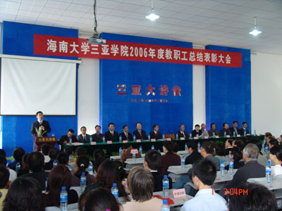 院党委书记、执行院长陆丹教授首先对2006年工作做总结报告。陆丹院长回顾了建校初期“快多好省”的办学思路以及十六字校训的内涵,总结了分院实体化管理、教学改革、学风建设、科研立项、年终评估及各部门所取得的成就,对全体教职工过去一年的工作予以肯定。他希望全体教职工在新的一年里继续发扬“有豪气、有大气、有正气”的校风精神,胸怀远大理想,树立服务意识,实践服务规范,同心同德建设好我们自己的家园,为海南贡献,为社会造福。 在报告中,陆院长特别提出了学院发展面临的形势与挑战,他指出,要逐步推广课程改革的成果,真正为学生创造愉快学习、自主成长的环境;要考虑如何使学院管理更加科学、有序,并提高到规范服务上来,切实保证为基层、为老师、为学生更好地服务;加强“约会学院”、“思想雨林”等讨论文化的推广力度,使之成为每个有志于学院发展的教师与学院管理者对话的平台,成为更广泛地吸引教职员工不受限制地进行学术讨论与争鸣的平台;整体规划师资培训,使老师在育人理念、教师素质、职业操守、教学能力、科研水平上有一个更大的提高。