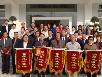 院领导与获奖人员合影2007年2月1日,学院隆重召开2006年度教职工表彰大会,对在2006年度年终考核被评为先进的部门和个人进行表彰。