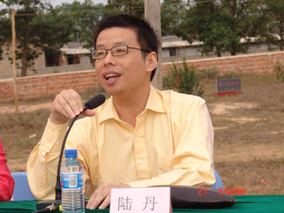 陆丹院长代表学院讲话陆丹院长在庆典活动中首先代表学院讲话,他说,教育是城市发展的动力,是为社会谋福利的事。学院资助人李书福先生要把三亚学院办成不求回报的公益事业,学院深感责任重大。建校以来,学院在省委省政府和市委市政府的领导下快速发展,也得到了红花村的大力支持。市委市政府提出的和谐三亚建设,以及人文与传播分院学生服务教育的责任和良知,把三亚学院和红花村更深地联系到一起,并在二月二龙抬头之后这个百业待兴的日子里,把支教活动和水渠开工进一步贯彻落实。在百年大业的创建过程中,学院的发展将始终和红花村联系在一起,我们会始终关注红花村小学的发展,在智力和物质上对红花村小学的发展给予支持,把义务支教长期坚持下去,还要把捐资助学活动延伸到落笔洞以外的其它地区。我们相信,三亚学院、红花村和红花村小学都会迎来更加美好的明天。