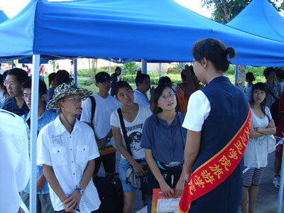 一位来自内蒙的家长也说,学院提出的“三级实习”非常好,不但能让孩子在学校学习期间就接触社会,了解社会,为以后的就业打下良好的基础,而且让家长非常放心,因为有学院的组织,就不用担心孩子在外面受骗什么的。 学院提出的“大旅游、大休闲、大文化”的发展战略也很受家长的青睐,优美的校园环境和海南丰富的旅游资源给家长们留下了难忘的印象,旅业管理分院的学生在亚龙湾高尔夫球会实习、在5a级景区大小洞天实习以及学院与喜来登酒店合办人才班等事实更坚定了家长们对这一战略的认同。一位旅业管理分院的新生家长就说,我的孩子报考旅游专业,就是看中了学院这一战略,在培养学生时又注重理论与