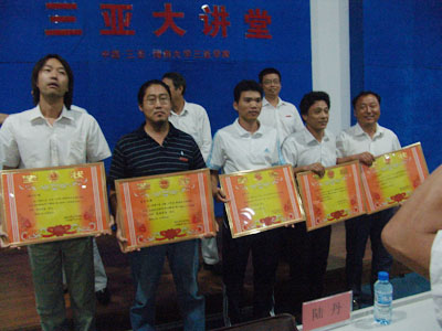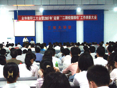 获奖集体代表为促进广大教职员工时刻牢记学院使命,不断提高自己的职业化水平,2007年10月18日,学院召开全院教职员工大会对本学期开学以来的相关工作进行总结表彰并部署下一阶段工作。自今年暑期培训以来, 全体教职员工加深了对学院事业的认识,更加自觉的把自身的价值和学院的事业结合在一起,共同致力于建设愿景共同,价值共享,激情创业,相生共济的大学社区。 会上,沈为平院长代表学院和院党委宣读了《关于表彰2007年“双迎”工作先进集体及个人的决定》、《关于在2007年招生及“迎新”工作中有突出贡献的沈建勇等同志的表彰决定》和《关于表彰学院二期校园接收及入住新校区工作先进集体和优秀个人的决定》。秦杰峰副院长安排了教学相关工作。 陆院长首先与全体教职员工分享了十七大的学习体会。陆院长表示,我们要通过政治学习等形式组织全体师生员工深刻理解十七大的育人为本、德育为先、持续改革并以之贯穿于各项事业、各项工作中等会议精神的相关论述。 陆院长在谈到科学发展观的第一要义是发展时强调,发展是第一要义还要以人为本,这里蕴涵着丰富的思想。在学习十七大胡总书记讲话的时候,我们领导班子要把新的思想不断落实,把社会发展的重大任务之一——教育的发展理解为“育人为本,德育为先”。陆院长从以下几个方面对十七大报告中全体教职员工学习的重点进行了提示: 第一,育人为本思想。学院党委组织部、宣传部开展的全校教职员工的政治思想学习过程当中,要深入地讨论。大学的功能有很多,育人功能是其基本功能。我们三亚学院一直以育人作为我们的使命,让学生更好地走向社会是我们第一的,也是唯一的使命。 第二,德育为先。我们要把推进教育制度的改革,把全面落实党的教育方针和培养社会主义的接班人和建设者的方针落实到我们的人才培养方案当中。我们要把教育部本年度1、2号文件提出的,全面培养学生的五种能力贯穿到人才培养、教学计划和各专业的教学课程中去。这个学期,这方面的工作将是教学工作的一个重点。我们应该把学生的人格打造进一步地深化,把十七大提出的以爱国主义为核心的民族精神,和以改革创新为核心的时代精神作为我们学生人格成长的一个重要要素。 第三,关于坚持发展。科学发展观的第一要义是发展。我们要立足于三亚、立足于海南来看党的这样一个决策。全国的高等学校是在提倡有节奏的发展,稳定规模的发展和提高教育质量。作为高等教育当下和下一阶段的重要任务,我们海南省委省政府还提出了落实这个思想的双增长任务,因为海南作为一个工业化几乎缺项的一个岛屿省份,长期现代教育的落后和工业城镇化的落后导致了对人才的渴求。因此,全国可能已经走上了一个稳定规模的路子,对我们海南来说,高等教育还有一个规模扩张的问题和质量提高的双重任务。因此,在科学发展观规模发展是第一要义的时候,我们的老师和职工要能深刻理解双增长对我们学院的特殊含义。 第四,要把改革落实贯穿到治国理政的各个环节中去。这是发展是第一要义的重要表述。我们三亚学院,体制创新、理念创新、教学模式创新只是一个开头。我们还有大量的工作和大量的内涵需要丰富,还有无数的细节需要处理好。日常的教学运转和改革的深化问题,人才培养的基本充实性问题和我们的个性化教育问题,以及我们的不同年龄不同学校的老师如何在一个人才培养模式里整合交流的问题……现在我们可以明确的是,我们要把育人的改革、把体制的改革、把体制的优势保留下来发扬广大,要把以持续的改革引领教学质量的提高这样一个思想坚持下去,要把以育人为本的课程改革积极的推动起来,要把以人为本的管理体制不断的深化。 关于下学期具体工作陆院长还强调了教学改革的推进、学生五种能力的培养在教学计划和教学环节的落实、科研工作新举措、评估工作体系化、党政工作要点中“学习制度”的建立和政治学习要正常化和深入化的要求。 最后,学院领导向受到表彰的先进集体和个人颁发了证书并合影留念。