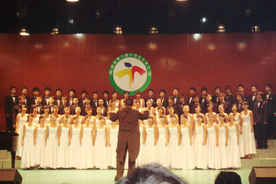 演出结束后与老师合影2007年12月8日下午,海南大学三亚学院合唱团在“海南省第三届大学生文艺汇演合唱比赛”中喜获佳绩分别获得普通组大合唱二等奖和普通组小合唱二等奖。 本次比赛共有来自海南大学、海南师范大学、海南医学院等高校的11支参赛队伍同场竞争,声势浩大,比赛尤为激烈。学院合唱团以一曲节奏复杂,音程关系多变,旋律优美的《香格里拉》荣获本次大赛普通组大合唱二等奖,而女声小合唱《黎家姑娘》则优美的旋律,独特的风格,唱出了黎家姑娘们丰收的喜悦并荣获普通组小合唱二等奖。 组委会专家认为,海南大学三亚学院合唱团各声部之间配合默契,歌曲达到了整体和谐,主题交替变换,别具立体感的最佳效果,给了听众一场丰富的听觉盛宴。同时,学院的精心组织、学生良好的精神面貌以及远道而来的精神也得到了组委会的一致好评。 (文 邢 恋/ 摄 学生处)