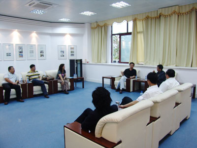 陆丹院长向来宾介绍学院情况