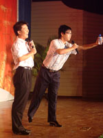 12月28日晚8点整,我校2008年“又是一年春来到”元旦联欢晚会在千人礼堂隆重上演。晚会以“辞旧迎新,共迎奥运”为主题,吸引了全院众多师生的观看。海南大学三亚学院党委书记、执行院长陆丹教授等学院领导以及各分院院长莅临了这次晚会。精心设计的舞台背景选取了喜庆的大红色做底色,搭配奥运五环和福娃的图案,突出了晚会主题。随着全场灯光的暗下,民乐合奏《春节序曲》的曲调响起,晚会正式拉开了帷幕。合奏结束后,陆丹院长上台致辞。陆院长肯定了晚会的前期准备,祝福所有的老师和同学在新年里取得更加辉煌的成绩。最后,陆院长给现场观众清唱京剧段子《智取威虎山》,赢得在场观众的阵阵掌声和欢呼声,将晚会推向了第一个高潮。学院艺术团的同学们精心编排的舞蹈《掀起了你的盖头来》、《奥运梦想》、《风采》精彩表演,给观众带来更多的快乐和趣味。小