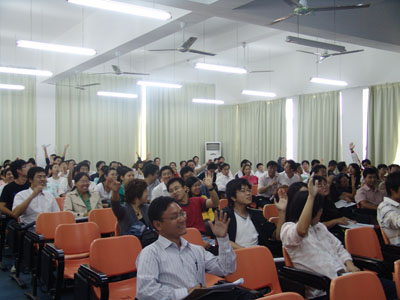 培训现场青年教师踊跃发言2008年1月20日下午,当学生们已经踏上了回家的归途时,学院青年教师齐聚一堂,沈为平院长再次就“怎样上好课”对大家进行培训。 沈为平院长在07年3月份已经就“怎样上好课”对新进青年教师进行过指导,培训后青年教师在规范教学和实践教学方面的认识水平普遍有所提高。此次,沈院长根据他一个学期以来对学院青年教师100多场的听课情况和自己多年的教学经验,“再谈怎样上好课”。沈院长从课程的教学目的,讲课内容的组织,口授的技巧,师生的交流互动,多媒体课件应用,做好课堂札记等几个方面谈起,对青年教师提高课堂教学质量提出要求:一是要遵守学院教学管理的各项规章制度,认真执教,教书育人,作学生的良师益友;二是按时保质准备好各种教学资料和文件,并据此严格执行、认真完成教学任务;三是要认真上好课,精心选择讲授课内容;四是要合理安排习题、答疑和考试;五是要开展教学研究、勤思索、多实践、广交流、善总结。 沈院长就课程的教学目的与现场的青年教师进行互动交流,人文分院的戴盛才老师和外语分院的陈媛媛老师分别就中文应用文写作教学、计算机教学和外语教学提出了自己在教学实践中的体会。沈为平院长就相关问题提出了合理的建议,并希望他们在新学期取得更大的进步。 年终岁末,沈为平院长深入浅出,生动活泼的培训讲授使在场青年老师受益匪浅,为学院广大青年教师来年的工作提出了新要求,带来了新动力。 文/摄 安 娜