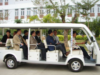 随后,周常委一行在陆丹院长的陪同下,乘坐电瓶车对学院的校园建设进行了视察。在视察过程中,陆院长向周常委介绍了学院一期、二期工程建设情况和三期工程的建设规划,周常委对学院的各项基础设施建设表示满意,对学院美丽的校园环境表示赞赏,对学院三年以来所取得的成绩表示肯定。