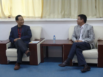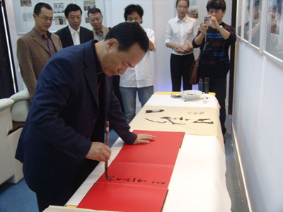 合影留念2008年2月1日下午,海南省委常委、宣传部长周文彰一行来学院视察、指导学院工作,院党委书记、执行院长陆丹教授接待了来宾并陪同领导视察了学院的校园建设。 首先,周常委在接待室观看了学院图片展,了解了学院的发展历程。随后,周常委和陆丹院长进行了亲切的交谈。在听完陆院长对学院兴办和发展过程的介绍之后,周常委对学院的规模发展、人才引进及院系专业设置等表示了关心并强调说:“三亚学院能够在短短的三年中取得这样的成效,你们的工作是值得肯定的。” 在交谈结束之后,周常委取《论语》“苟日新,日日新,又日新。”中的“日新”二字为学院留下墨宝,并题写了“三亚学院发展神速,希望培养出大批有用人才”的寄语。