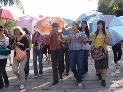 合影留念又是一年三八节,今朝欢乐别样多。 2008年3月8日,学院全体女教师在学院工会的组织下,由本院学生做导游,到国家5a级景区大小洞天进行旅游观光,庆祝自己的节日。 小导游们把平时的课堂学习与认识实习学到的知识结合起来,将景区的各个景点和相关道教文化娓娓道来,对老师提出的问题对答如流。他们把导游的服务意识深入到细节,使各位老师在享受自然优美风光的同时,感受到了“让学生更好地走向社会”理念得到践行所带来的欣慰。时近中午,参加活动的师生在道家素食馆愉快用餐,度过了一个难忘三八节。 院党委副书记牟维莲参加了此次活动,她对学生的表现表示了充分肯定,鼓励有加,认为这次节日活动轻松、美好,又享受了我院的教育成果,特别有意义。同时,祝大家在08年收获多多。 安 娜