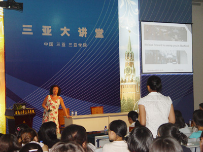 4月8日晚7:30,学院“三亚大讲堂”内座无虚席,一场令人期待的交流会在这里准时开始。英国著名大学谢菲尔德哈勒姆大学副校长fiona女士,来学院洽谈合作事宜,同时,与我院学生就赴英国谢菲尔德大学进行硕士预科班学习作相关信息交流。