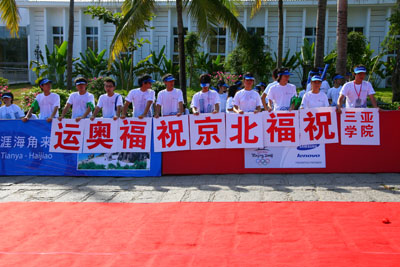 圣火传递现场(三) 在5月4日奥运圣火境内首站传递过程中,学院作为三亚市第一所本科高校全程参与,3000多名学生在圣火传递过程中承担了导引、服务、路演等多项工作。 三亚站圣火首传恰逢“五四”青年节,特殊意义的节日更激发了学生们的爱国热情。除志愿者外,更有大批学生走上街头,与奥运圣火一起跑遍三亚。 在迎圣火现场,学生们说,“学院常常在公共课上强调爱国主义教育,今天,保护奥运圣火安全传递,正是我们表达爱国热情的最佳方式。在“五四”青年节为奥运圣火传递服务,尤其带有特殊的意义,这是我们的责任和骄傲!” (摄影:闫奕霏、吴启星)(编辑:陈莎莎)