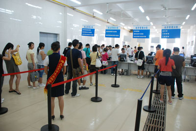 浏览《迎新特刊》的家长 岁岁迎新,今又迎新。9月2日,学院08级新生正式开始报到注册,为期三天的迎新工作全面展开。莘莘学子将从全国三十多个省、市、自治区来到这片浪漫美丽而又充满生机的沃土,共同谱写一段青春的凯歌。 装点一新的校园迎来首个报到高峰 今天三亚阳光依然灿烂,早晨6点,就有一辆辆满载新生及家长的大巴车缓缓驶入三期新校区,一路上,大型欢迎横幅标语、各色各样的彩旗、示意图和新生报到引导牌把校园点缀得充满了欢乐的节日气氛。虽然仅仅是正式报到的第一天,各个报到接待点人流络绎不绝,首个报到高峰已经出现。 新生自主完成报到现场井然有序 “自主成长从独立报到开始,请让您的孩子独立完成报到过程。”在报到大厅门口,首先映入眼帘的是这样一块别具一格的提示牌。为了让新生尽快地适应大学生活环境,培养独立自主的生活态度,学院规定,新生必须独立完成入学报到手续,陪同前来的父母则被安排到球场家长休息区内休息。 在报到现场记者看到,新生按照报到指示牌和流程图根据自己录取的专业找到对应分院报到处,在迎新志愿者的指引和协助下独立完成报到注册的全过程,整个报到大厅内各项工作井然有序。 让新生及家长感受大家庭的温暖 自8月29日起,学院迎新工作组在海口和三亚火车站、飞机场、汽车站设置接待点迎接提前来琼的新生和家长。为了方便新生,学院安排了校车全天工作,赶往火车站、飞机场、汽车站免费接送新生入校,使他们安全、方便、快捷地报到注册。 据了解,在此之前,学校相关领导会同各分院、各负责人已经做过多次会议讨论和部署,要求各分院部门制定迎新工作方案,提前做好各项准备,确保迎新工作有条不紊地进行。 每一批新生和家长抵达报到点,都有身着统一服装的志愿者为新生及家长提供迎接、导引、咨询等热情周到的服务。新生进入报到大厅注册时,家长则被邀请进入休息区。休息区内备有饮用水和院报迎新特刊。家长们可以在休息同时了解学院情况。安排完新生的报到及入住工作后,志愿者还积极带领新生和家长们参观校园熟悉环境。学院有关领导、负责老师、辅导员也亲临迎新现场,投入到迎新工作当中。以新生为本开展咨询和服务,协调解决学生的实际问题,让新生安心入学。 志愿者李石磊这样告诉记者:“相聚天涯是一种缘分,我们要以最大的热情迎接他们,让他们忘记长途跋涉的疲惫,感到三亚学院大家庭的温暖。” (周嵩�玻�