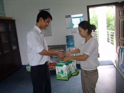 分院教师代表老同志领取重阳小礼物