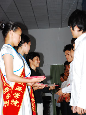 颁奖现场 2008年迎新工作已圆满结束,为总结经验、表彰先进,学院于10月8日下午5点召开了2008年度海南大学三亚学院学生迎新工作表彰大会,学院党委副书记牟维莲出席了大会。 08年迎新工作分接站、接待、后勤保障、协调等多个工作小组。每个工作小组都有大量学生干部参与其中。迎新期间,他们本着“服务学生、热情周到,方便学生、简捷顺畅”的原则,用热情和周到的服务给08级新生及家长留下了深刻的印象。 牟书记发言中说,在三亚学院快速发展和成长的今天,迎新工作有着特殊的意义,它帮助新生迅速熟悉学院情况,初步了解育人理念。同时也是学生干部践行校风、校训,树立服务意识,培养集体荣誉感和责任心的重要途径。学生干部在新生服务工作中所表现出的热情态度和礼仪规范向新生及家长展现了学院学生良好的素质,显示出学院三年来的育人成果。反映了我们的学生在吃苦耐劳,责任担当方面的成长。牟书记代表学院向迎新期间忙碌的学生干部们表达了深深的谢意。 随后,牟书记宣读了受表彰同学名单。李石磊等11名同学获得优秀组织奖;曹盛楠等54名同学获得突出贡献奖;宣扬洋等103位同学获得了先进个人的荣誉称号;周玉帅等123位同学获得优秀训导员称号。 最后,获奖学生代表张佩发言,他表示会珍惜荣誉,在以后的工作学习中开拓创新,不断进步。 (谢婧斐 马列 李亚光)