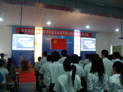 学员代表发言2008年10月29日下午,伴着庄严的国际歌声,学院党校第五期入党积极分子学习班开学典礼在五百人礼堂如期举行。各总支书记(副书记)、团委老师和约300名学员一起参加了典礼。 学院党委副书记牟维莲同志主持典礼并讲话,她说,入党首先要端正入党动机,入党积极分子学习班通过对大家进行系统培训,有助于大家更深入、更准确的认识党、了解党,热爱社会主义事业,从而真正解决为什么入党的问题,端正入党动机。她对学员提出了几点要求,希望大家以正确的态度对待这次学习,遵守学习纪律,加强马克思主义理论修养,理论联系实际,自觉自学相关理论,通过党校学习真正提高思想认识,争取早日加入党组织。 经济管理分院学生唐宏磊代表学员发言,表示在党校学习期间会认真听课,做好笔记,积极参加讨论,遵守纪律,圆满完成各项学习任务,争取以实际行动早日成为党组织的一员。 根据教学计划,本次学习班历时一个半月,学员分为17个小组,采用集中学习、自学和讨论等方式进行。党校从入党动机、理论认识、理想信念、党性修养四个方面组织教学,以期从不同方面提高学员的思想认识水平。 (史志艳)