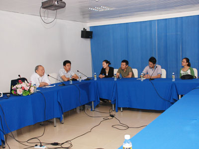 合影留念 2009年2月26日,清华大学美术学院教授、国内平面设计领域泰斗陈汉民教授来到学院参观,与师生交流座谈,并在学院三亚大讲堂开设讲座。 陈汉民教授现任清华大学美术学院教授、督导,中国美术家协会理事、平面设计艺术委员会主任。陈教授长期从事平面设计与设计教育工作,是我国著名的设计家、设计教育家、中国平面设计界的泰斗,他所设计的香港回归专用标志、中国人民银行、中国工商银行等标志家喻户晓。 参观学院之后,陈教授与学院艺术分院平面设计专业以及形象设计专业教师进行了长达三个小时的座谈,并来到相关专业课堂,对学生的设计作品进行指导。在三亚大讲堂,陈教授结合自己丰富的设计经验和自身作品,谈设计体会,阐述设计理论与实践的关系。丰富的实例资料、精辟独到的理论观点,使师生们获益匪浅,讲座持续近四小时,在热烈的氛围中圆满结束。