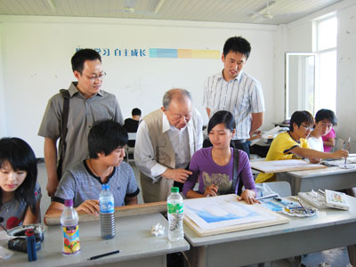 陈汉民教授对学生的设计作品进行指导