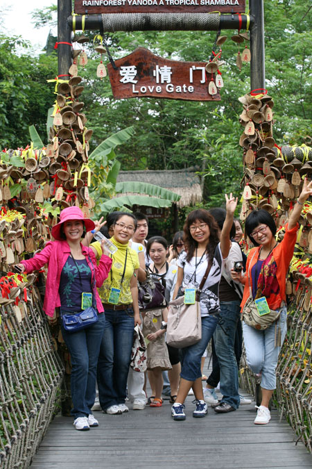 依次路过爱情门、亲情门、友情门、幸福门…我们把每份祝福都送给三亚学院人 为庆祝“三八”国际劳动妇女节100周年,关爱三亚学院女性教职员工,给她们在事业的忙碌中带来一缕休闲和轻松,3月7日,学院工会组织女性教职工游览“呀喏达”热带雨林风景区,感谢她们对学院事业辛勤的付出,共度美好节日。 老师们一边听着导游讲解,一边观察着热带雨林内大量的原始森林和次森林,欣赏“绞杀现象、空中花篮、老茎生花、高板根、藤本攀附、根包石”等雨林奇观,并互相摄影,留下一张张趣味盎然的照片保留这美好的记忆。自费同行而来绅士们则积极主动地为女士们拎包、拍照,做好各项旅游服务。 谷区密林深处的生态栈道、巨石两边陡峭的石级、悬空摇晃的过山吊桥……老师们领略着雨林深处的静谧和神奇,放松身心,同时格外注意保护生态环境,用过的纸巾,空了的饮料瓶都随身携带着,直到走出雨林区才扔进垃圾桶。整个游览过程中大家脸上笑容灿烂却没有人高声说话,生怕惊扰了那些栖息在雨林中的生物,景区导游和工作人员见此情此景,纷纷向老师们竖起大拇指,其他游客也变得更加注重个人举止言行。阳光大学所孕育的阳光文化魅力在老师们的身上再次得以体现,大学价值影响区域文化的作用亦通过每位老师的行为细节得以彰显。