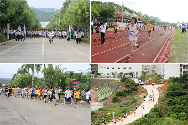 快乐的见证 4月28日下午4点30分,“海南大学三亚学院阳光健身活动之‘迎五一’千人万米长跑”在学院迎宾大道打响发令枪,1300余名师生参加了本次活动。 据悉,万米长跑作为三亚学院“体育节”重点项目开展尚属首次,除“马拉松”之外,学院还将在 5月上、下旬分别举行游泳比赛和田径比赛,以响应国家关于“每天锻炼一小时,健康自信一辈子”的倡议,进一步提高师生身体素质,锻炼同学们的顽强拼搏精神,打造健康人格。同时,这也是为同学们“更好地走向社会”打基础,为建设“阳光大学社区”育文化的具体举措。 本次长跑共分学生男子、女子和教工三个运动组。4:40分,随着第一声发令枪响,早已跃跃欲试的学生男子组运动员率先冲出起跑线,紧接着,学生女子组和教工组参赛选手也依次在清脆的发令枪声中奔赴万米征程。赛道两旁早已挤满了热情高涨的啦啦队员和观众,他们摇旗呐喊为运动员们加油助威。 第一个出现运动场内焦灼等待的观众们视野中的运动员是理工分院的栾亚峰,刹那间,全场观众高声欢呼。激动人心的时刻带动全场气氛。他在最后速度冲刺时身体依然强劲有力,大跨步,大幅度摆臂,带着青春的激情拥抱终点的红色绸带。 和栾亚峰一同站上领奖台的是来自旅业分院的沈淑女和单德鹏老师,他们分别在三个运动组拔得头筹。最终,理工分院以总分216分获得团体第一名,管理分院和财经分院分别以198分和138分获得第二和第三。收获了胜利果实的运动员们似乎忘记了疲倦,彼此谈论着跑步途中的感受。站在领奖台上的他们高举着荣誉证书,绯红的证书映红了大家兴奋的笑脸。 赛后,兴奋的运动员们聚集在运动场上快乐地交谈。 “好的身体才能保证好的学习,参加这样的活动让我更加明白,健康很重要。” “平时看着老师们讲台上的风度,今天又看到他们运动场上的拼搏,觉得老师更亲切,更让人敬佩。” “一路上,同学们的鼓励是我们最大的动力!” “当我觉得坚持不下去的时候,是同学拉着我的手跑完了全程。” “我们希望能举行更多这样的活动。” …… …… “我们一路拼搏,一路欢笑,一路阳光……” (供稿:大学生记者团)(文字: 付昌华)(摄影:李迪 樊迪)