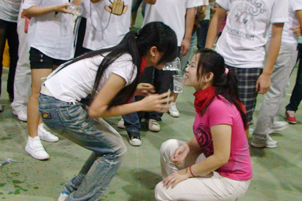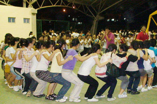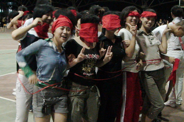 “人椅” 2010年5月11日19时30分,健康人格工作室大型系列团体辅导之走进旅业管理分院在风雨操场正式开始,本期�馓甯ǖ加陕靡倒芾矸衷豪畈�老师担任总主持人,参加本次团辅的还有旅业管理分院部分辅导老师、健康人格工作室老师以及2008级应用心理学专业飞虎队的成员。 在简短、激情的动员之后,全体活动参与者共同宣誓——“听从指挥、热情参与、尊重他人、帮助他人、决不放弃、与队友共同完成任务”,激情澎湃,高亢明亮的誓言拉开了本次活动的序幕。 活动分为4大部分,首先是热身活动“衔杯传水”,随着水从一个同学的水杯倒向另外一个同学的水杯,大家的情绪和积极性都被调动起来,增强了完成活动任务的信心。随后的短暂分享中,同学们各抒己见,热情地表达着对此次活动的认可和对下一个活动的期待。 接着开始主题游戏“情同手足”,这个活动的目的在于培养团体成员的团队合作、协调能力、目标意识和竞争意识。在这项活动中,同学们充分发挥了彼此之间的默契,积极主动的参与到活动中来,努力争取胜利,大家的眼睛虽被蒙住了,但大家彼此的心连在一起,共同完成了这项任务。 “人椅”仍然是传统的保留项目,旅业管理分院的同学们高喊着“自立更生、合力更新、有容乃大、不懈则优”的校训和“旅游,旅游,勇创一流”的分院口号,团结一心、咬紧牙关,坚持不懈到最后一刻。 在团辅活动的任务分享阶段,班级同学拿出事先准备的精美的心愿卡,写下自己的活动体验和多同学、老师的祝愿,分享参加团体辅导的感受,进一步增加班级同学的感情与友谊。 紧张欢乐的两个小时很快过去,团辅活动结束时,同学们虽有一些疲倦,但却感到很快乐,今天的活动让他们充分体会到了阳光人生、健康向上的大学生活氛围和团结合作、相互信任的团队意识的重要性。 据了解,本期�馓甯ǖ际墙】等烁窆ぷ魇掖笮拖盗型盘甯ǖ嫉牡�7站——走进旅业管理分院。针对旅业管理分院的特点,结合国际旅游岛建设对旅游专业人才的要求,专门为其制定了具有团队凝聚力和相互信任感的游戏活动。接下来,健康人格工作室大型系列团体辅导还将陆续走进艺术分院和理工分院。