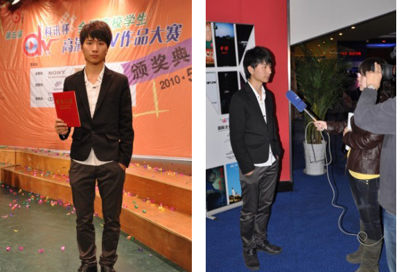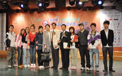 颁奖礼现场合影留念 记者从刚刚结束的第五届全国学生高清暨dv作品大赛颁奖典礼中获悉,学院人文与传播分院07级播音主持专业徐凯同学及其团队拍摄的艺术片《着迷》荣获了本届大赛的一等奖。这是我院继第四届大赛中由短片《苏醒的夏天》获得的二等奖后取得的最好成绩。 2010年5月15日,第五届全国高校学生高清暨dv作品大赛颁奖典礼在长春隆重举行。本次是由教育部高教司、中国教育技术协会,以及中国传媒大学等11家高校联合举办。为高校影视传媒专业学生搭建了学习和交流的平台,培养和挖掘了数百名影视人才,更好地推动了视觉影像文化发展,加强校际间的合作与交流。 本届大赛共收到88所院校的近400部参赛作品,其中高清作品参赛数量创历届之最。本届大赛有两个创新之处,之一是首次在原有参赛类型基础上增设命题参赛单元;之二是首次邀请国外高校学生参赛,拓宽了交流合作的平台。本次大赛的参赛作品无论在题材体裁、造型布光、音响音效,还是在后期制作上都达到了较高水平,受到各界专业人士的一致称赞。 由学院07级播音主持专业学生徐凯编剧导演拍摄完成的原创作品《着迷》以其独特的讲述视角,精美的摄像构图和细腻的表演风格,从全国各大高校选送的数百部作品中脱颖而出,荣获一等奖。《着迷》的主创团队是由人文传播分院播音主持专业和艺术分院动画专业学生共同组成,也是跨专业联合创作的一次尝试。作品在专业比赛中得到认可,一方面是对我院特色人才培养模式育人成果的肯定,另一方面也给实践教学在教学模式的创新、内涵建设与品牌打造的融合等教学方法、思路方面提供了新的依据。 (文字:李琼)