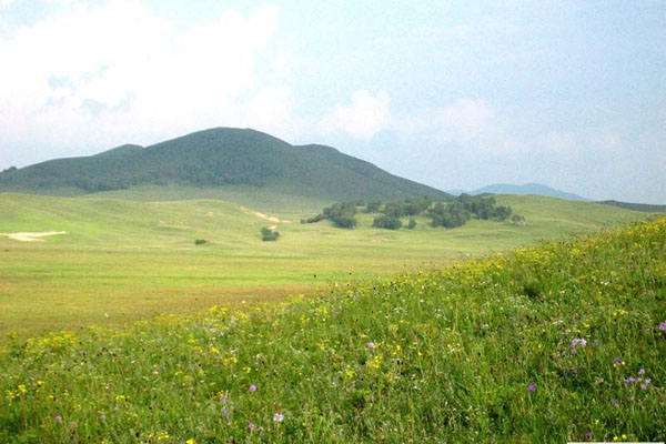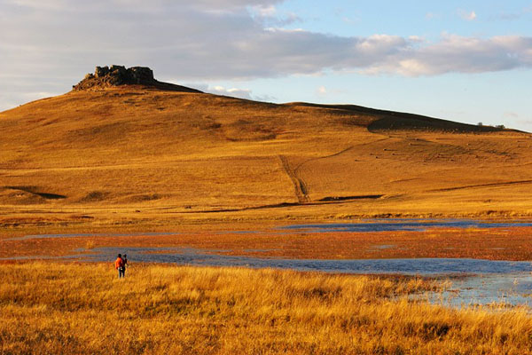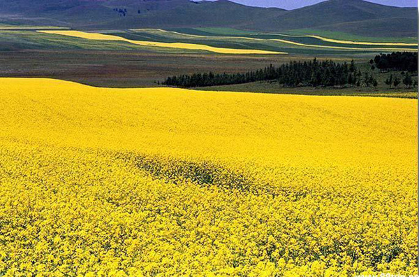 金莲花海 令我印象最深的是广阔的草原上的那一片片金莲花,微风浮动的时候,像是满山的火海自平地燃起。那些叫不上名字的野花也似神来之笔,星星点点的点缀使绿油油的草原看起来如一幅天然的美妙画卷,而那一棵棵偶然出现的孤木虬枝又给草原增添了几分沧桑,让人不由得感慨大自然的神奇曼妙。