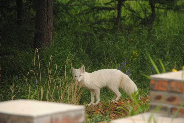 传说中的神龙潭 虽然木兰围场以草原著称,但是在山水之间也有不同的景色。在两山之间,一条河蜿蜒而下——这就是曾经有龙之传说的神龙潭!亲临神龙潭便有“两岸闻马啼,蛟龙出水来”之感!让人不由感叹这里真是一块宝地!它带给我们很大的惊喜:在这里碰到了难得一见的雪狐!果然也只有在毗邻塞罕坝国家森林公园的围场能见到它了!
