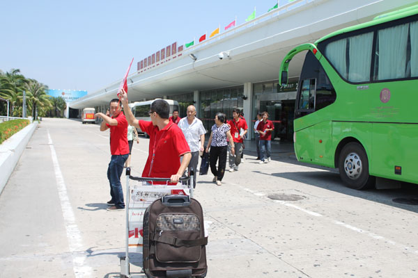 长途旅行,虽然疲惫,但阳光学子们精致热情的服务让新生及家长放心、满意! 他们始终面带微笑,频繁穿梭于火车站要道,在火车站入口处热情接过新生行李,将新生及其家长带到集合点,最后用车将其送往学院协调安排的酒店休息。 迎新的学生干部以阳光学子良好的精神面貌为新生及家长提供精致周到的服务,受到新生及家长的一致好评。一名来自江西的家长开心地对记者说:“三亚学院的孩子们真热情啊!把孩子交给学校我放心!” 火车站负责人赵万里对记者说,他很激动能为学弟学妹服务,这已是自己第二次做迎新工作了。 迎新接站之汽车站站点 最后,记者走访了汽车总站接站点,由于是上午时段,人流量较小,但阳光学子们始终不懈怠,在汽车出站口翘首以待随时准备接待新生,从早上7点一直接到晚上11点,只希望“一个不漏”地接到新生。 记者采访了负责校外迎新接站工作的陈国庆老师,陈老师表示已经充分做好迎新接站的准备,在总结往年经验的基础上,今年迎新更加注重细节,也更能灵活的解决突发状况。对于今年迎新人数相对有所增加的情况,迎新接站学生干部的接站时间从早上七点开始,部分接站点最晚坚守至凌晨两点,争取不漏接一个新生。 【编者按】步入大学的殿堂,就意味着站在了人生的一个重要的新起点上。大学,是把所学的知识和实践相结合的场所,是积蓄能量实现梦想的磨练所。阳光大学已热情张开双臂,拥抱这些可爱的新生们,四年里,他们将愉快学习,自主成长!祝愿阳光大学越来越美好,祝愿新生健康成长,学有所成! (文:大学生记者团 庄晓霞)(摄影:大学生记者团 张佳代)(编辑:於丹)