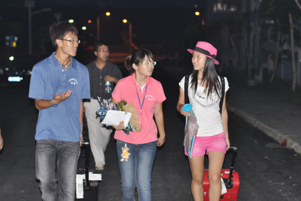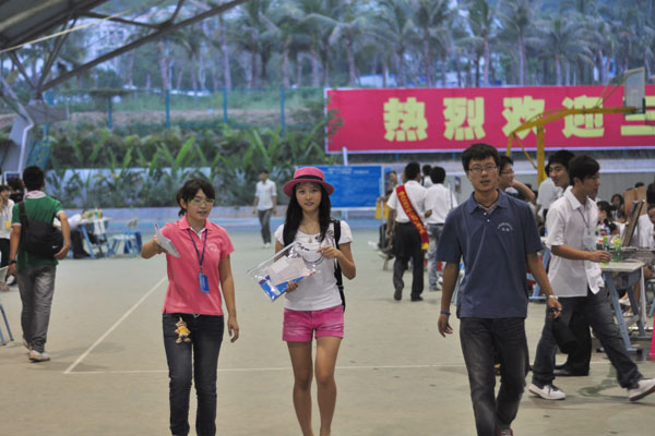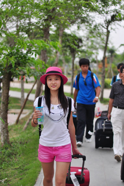 hi,大家好!我叫王扶摇,来自河北。 经过高三的“洗礼”,我被美丽的三亚学院录取了,录取专业是我喜欢的旅行社管理,接到录取通知书那天,别提有多兴奋了,全家人也都为我高兴。 9月4日下午6点,我和爸爸妈妈下了飞机往出站方向走,当我正拖着行李箱准备打量一下这个即将生活四年的城市,第一眼就看到学长们举着醒目的三亚学院标志牌,听到一声声热情的声音“三亚学院的请往这边走”,顿时有了种自然温暖的亲切感。 迎面走来一个穿着蓝色衣服阳光帅气的学长,和一个穿粉色衣服的漂亮学姐,他们热情地对我说“旅途辛苦了,欢迎你来到三亚学院!”在他们的带领下,我和爸爸妈妈顺利地乘坐上了学院迎新接站的大巴,准备前往我已经无数次通过校园网站中的图片幻想过的美丽大学。