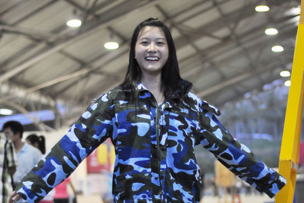 我迫不及待地穿上了军训服,先过把瘾。怎么样,漂亮吧!