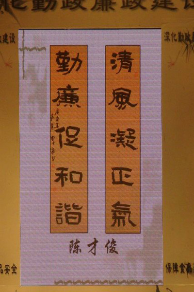 在最近湖北省面向全国举行的以“勤政廉政”为主题的书画大赛上,我院大三学子陈才俊从1000余名参赛选手中脱颖而出,荣获一等奖。