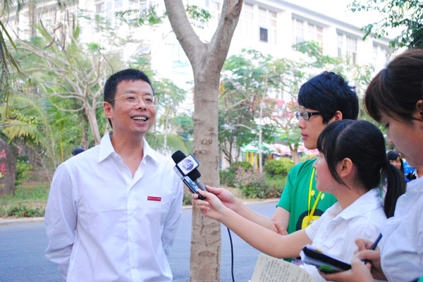 动员大会后,学生记者们第一时间采访校领导陆丹