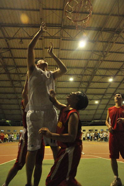 场下激情啦啦队 今晚球赛疯狂的啦啦队们主力都是来自各个学院的学生,相对于赛场上的教师,他们用高分贝的喝彩声释放心中的激动。“老师们的激情感染着我们的每一个运动细胞!这样的团体运动带给了我们前所未有的欢乐和运动的欲望与激情!”在一旁为老师加油的李湘婷同学兴奋地说。 教职工篮球赛作为欢乐节的第二站,从12月1日开始,持续近半个月,掀起了又一轮运动高潮。接下来还有高尔夫球、网球、游泳、武术,帆板,自行车等一系列赛事,新闻中心将继续为您带来最新的报道,敬请关注。 (摄影:卓越传媒<大学生通讯社> 李少哲 任点军 李丹砾)(文:卓越传媒<大学生通讯社> 吕双娇 李晨光)(编辑:於丹)