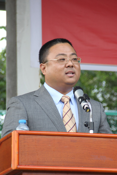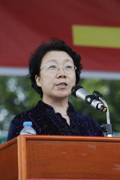 教务长江合宁主持阅兵仪式 分列式阅兵结束后,校领导沈建勇做军训总结讲话。他表示,12级全体新生充分发扬了敢于吃苦,迎难而上,“流汗不流泪,流泪不掉队”的精神,克服了各种困难,圆满地完成了预定科目的学习和训练任务。军训中的新生集中展示了90后不怕苦不服输的精神和坚强意志,展现了当代大学生的良好风貌。 军训是2012级新生大学生活的起点,他们在这次洗礼中强健体魄,磨练意志,学习自我管理,塑造健康人格,为未来四年的大学生活打下了一个良好基础。军训意味着一个全新的开始,沈建勇对全体新生提出了三点期望:一、以军训为起点,调整心态,转变角色,快速认识和适应大学生活,成长为一名优秀的大学生;二、做好个人规划,明确目标,定好方向,有的放矢,为四年毕业后更好地走向社会打下坚实的基础;三、勤于学习钻研,塑造健康人格,学好专业知识,做有责任、有担当的优秀三亚学院人。 记者采访了教务长江合宁老师,她说:“阅兵式是一次军训总结,也是未来专业学习的动员大会,此次军训是对大家意志和毅力的锤炼,也是对其品德和思想的锤炼,大家通过这次阅兵不仅塑造了强健的体魄,同时也是一份激励,为下阶段的学习提供良好的平台。”