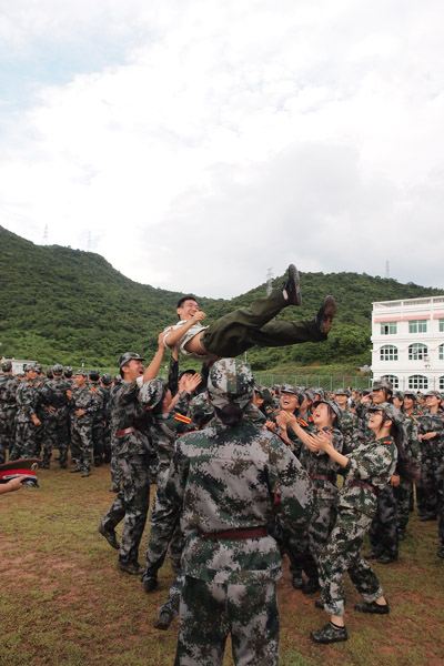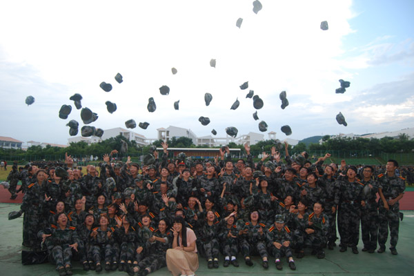 合影留念 大会结束后,同学们不舍军装、不舍训练,纷纷合影留念。他们释放着同学情、战友情,齐心合力把敬爱的训导员抛向天空,表达着他们别样的感谢。他们绽放着最阳光的笑脸,挥动着军帽,把心中的梦想放飞在三亚学院的蓝天下。 (文:大学生记者团 梁晨 彭火琴)(图:大学生记者团 任点军 郑岑宁 李婷 丁天一 蒋晔峻 张桢干 朱文鼎 王佳文)