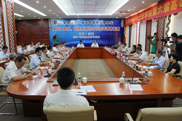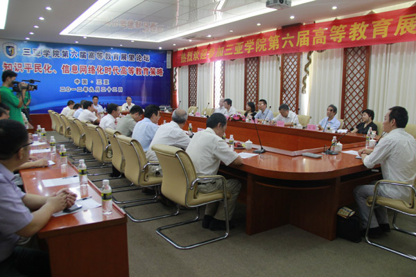 9月22日上午,第六届三亚学院“中国高等教育展望论坛”在我校书海馆417会议室举行,来自北京语言大学、上海交通大学、黑龙江大学、中山大学、海南大学等高校及上海社科联的国内知名专家学者齐聚三亚学院,与我校党委书记、院长陆丹,校领导沈为平、沈关宝、王勋铭、沈建勇及学校20多位教授、博士汇聚一堂,围绕本届论坛主题“知识平民化、信息网络化时代高等教育策略” 展开了学术讨论和研究,为中国高等教育的发展出谋划策。会议由校领导沈关宝主持。