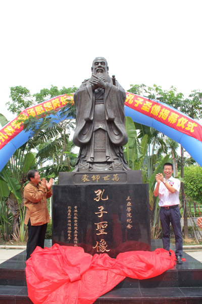 香港孔教学院院长汤恩佳在揭幕仪式上说,“三亚学院豪气、大气、正气的校风,走进校园是为了更好地走向社会的育人理念与中国传统的儒家思想相契合,向这所儒学文化底蕴深厚的现代化大学捐赠铜像,我感到很开心。希望三亚学院的同学们经常可以瞻仰孔子圣容,思考孔子教诲,进而培养爱祖国、爱民族的情感以及为人处世的道德伦理观念,做一个既有科学文化知识,又有高尚品德的青年人。”