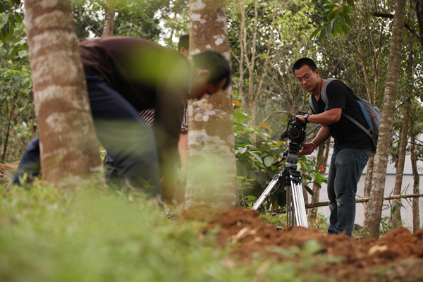 阳光学子深入热带雨林协助拍摄天堂岛的热带风情2012年12月,我校传媒与文化产业学院王斌、崔腾飞、张奔、刘鹰、苏伟民、曾泽超6位阳光学子跟随中央电视台摄制组深入海南各地拍摄纪录片《海之南》。整整一年后,该片已于本月16日在cctv《探索·发现》栏目首播。当电视上一个个熟悉的画面浮现眼前,阳光学子的跟组拍摄记忆也被唤醒。