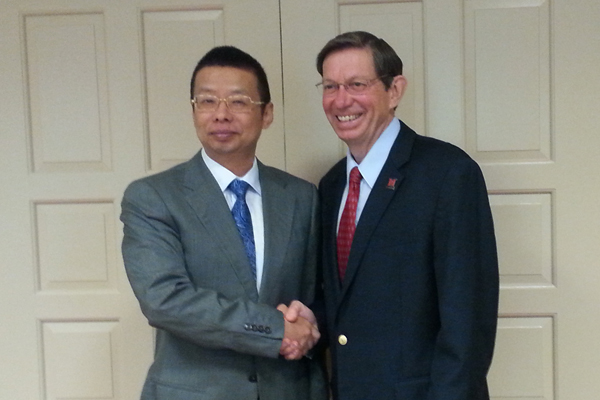 陆丹还与该校现任副校长bobby gempesaw 先生、将继任副校长兼商学院院长matthew b. myers教授、教育学院院长susan mosley-howard 教授以及工程学院、图书馆等教学和管理部门负责人进行了深度交流。