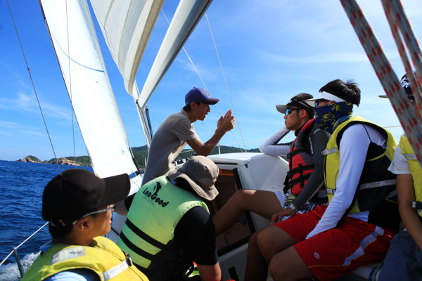 7月1日下午3时,北纬18度,天蓝,海蓝,云白,风清,一堂帆船课正在三亚海棠湾展开,上课的是我校帆船队的阳光学子们,他们正在备战即将于8月3日在厦门举行的第二届泛太平洋大学生帆船赛暨第四届海峡两岸高校帆船赛。继去年首次代表我校参赛并斩获优秀奖和体育道德风尚奖后,今年的他们更加成熟、更加满怀热情与期待。