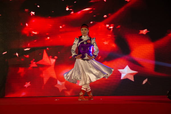 苏宁巴雅尔以独具特色、节奏明快的蒙古族舞蹈感染全场