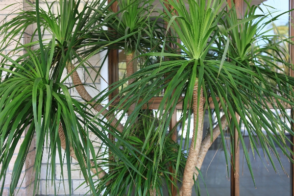 不老松又名龙血树,因其茎干肤色灰青,斑驳栉比状如龙鳞,而且又可分泌出鲜红的汁液,故而得其美名。原产非洲西部的加那利群岛,生活在热带森林中。全世界共有150多种,我国南方的热带森林中有5种。龙血树是常绿乔木,一般高约10―20米,主干异常粗壮,直径常达1米以上 。树上部多分枝,树态呈y字形。叶带白色,像锋利的长剑密密地倒插在树枝顶端。开白绿色花,结黄橙色浆果。