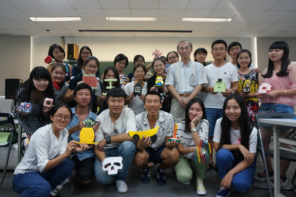在台湾游学最让我们感到和大陆不同的还是这里的教学方式。台湾更注重动手能力的培养和学生的自主性。学校所有的课程安排与上课进度完全是站在学生的角度上,纯理论的课程内容不多,大多是让学生自己提出想法再自己去动手完成。这里实践课程非常多,从第一节机械手臂刺绣课让我们自己用机器秀出一件件作品,到后来的摄影课上只上了一节摄影知识与美学构图后就让我们自己拿着相机在校园里取景,再将摄影作品用老师教的方式做成ppt成品报告,最后到创意课程我们自己用工具和材料做手工,都是让我们自己动手将设计和创意付诸实践。